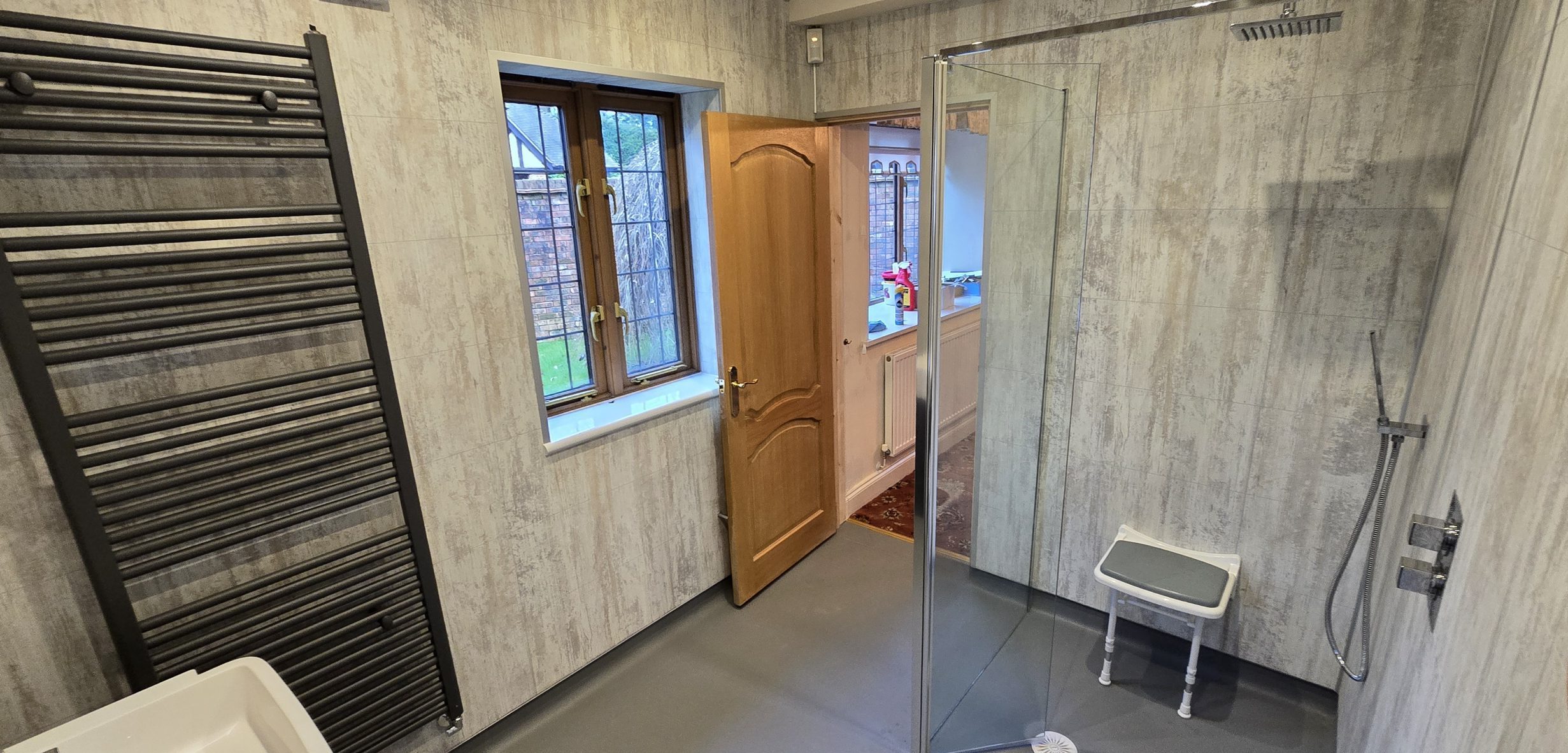 Once you’re happy to go ahead, we agree dates and manage the full installation. This usually includes removing the old bath or shower, preparing and waterproofing the floor, installing the new drain, fitting non-slip flooring and wall panels, and adding your chosen shower, seat and grab rails. We keep disruption to a minimum, protect your home and always leave everything clean and tidy.