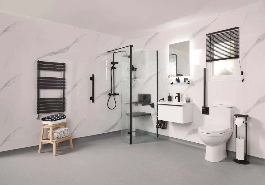 Enjoy a modern, open-plan bathroom that’s designed for comfort, safety and effortless accessibility.